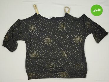 Bluzka damska w grochy - Kolor: czarny w białe kropki - Krój: luźny, lekko wydłużony tył, krótkie rękawy - Dekolt: zaokrąglony z krótkim rozcięciem z przodu - Detale: dwie dekoracyjne, metaliczne ...