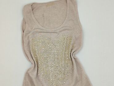 Top bez rękawów w kolorze złotego beżu - Fason: dopasowany, bez rękawów - Dekolt: w kształcie litery V z niewielkim rozcięciem - Materiał: cienka, lekko elastyczna dzianina z połyskiem (metaliczny ...