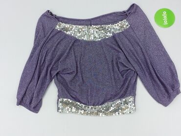Rękaw 3/4Fioletowy top damski z długimi rękawami, ozdobiony srebrnymi cekinami. Cekiny rozmieszczone są wzdłuż linii dekoltu oraz na dolnym brzegu, co dodaje blasku i wyróżniającego się charakteru. Elastyczny materiał zapewnia komfort noszenia i dopasowanie do sylwetki. Rękawy zakończone są ściągaczami. Idealny na wieczorne wyjścia, imprezy czy uroczystości, gdzie chcesz się wyróżnić.