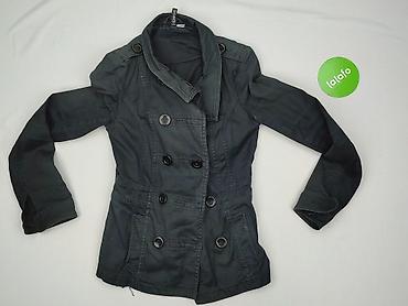 Damski płaszcz/kurteczka typu trench w kolorze ciemnogranatowym (prawie czarnym).
