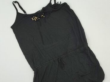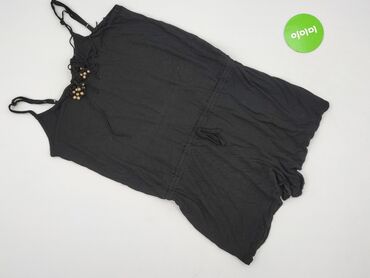 Czarny damski kombinezon szorty George - Fason: jednoczęściowy kombinezon z krótkimi spodenkami - Ramiączka: cienkie, podwójne, z regulacją - Dekolt: ozdobne pionowe frędzle na przodzie, uzupełnio...