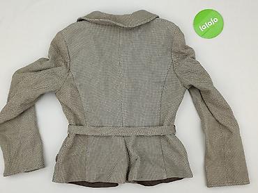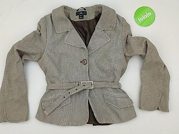 Stylowy, kobiecy żakiet podkreślający talię; sprawdzi się zarówno do biura, jak i do codziennych stylizacji. Dla kobiet, nie dla niemowląt. Stan wg opisu: bardzo dobry, używany.