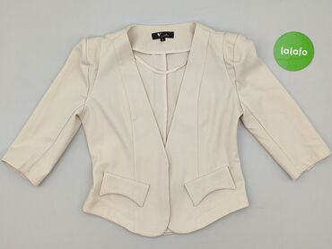 Jasny damski żakiet marki Cutie w rozmiarze S, idealny do stworzenia eleganckich i casualowych stylizacji. Wykonany z mieszanki 95% poliestru i 5% spandexu, co zapewnia komfort noszenia i elastyczność. Charakteryzuje się nowoczesnym, otwartym krojem bez zapięcia, z długością rękawa 3/4. Subtelne detale, takie jak pionowe przeszycia i ozdobne kieszenie bez klap, dodają mu szyku. Idealny zarówno do biura, jak i na specjalne okazje, doskonale komponuje się z różnymi elementami garderoby.