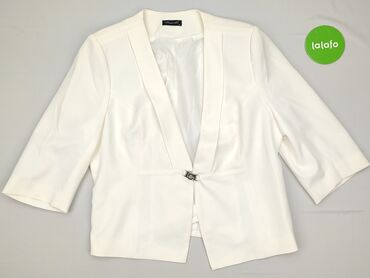 Żakiet damski Margaret M., rozmiar 40 - Kolor: ecru/śnieżna biel - Fason: lekko taliowany, elegancki - Rękawy: 3/4 - Zapięcie: dwa guziki z przodu - Kołnierz: stójka przechodząca w dekolt w kształ...