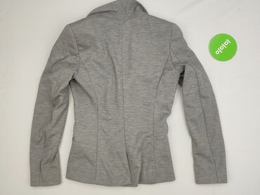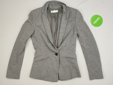 Szary damski żakiet H&M - Marka: H&M - Rozmiar z metki: EUR 34 (US 4, CA 4, CN 160/80A) - Krój: taliowany, jednorzędowy na jeden guzik - Kołnierz: klasyczne klapy - Kieszenie: dwie wpuszczane z pr...