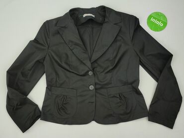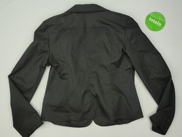 Damska marynarka Leshha - Krój: klasyczny, jednorzędowy, zapinana na 1 guzik - Kolor: czarny - Podszewka: w paski (jasna z cienkimi ciemnymi pasami) - Rękawy: zakończone listwą z trzema guzikami -...