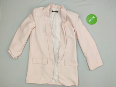 Marynarka damska Primark Cares - Kolor: brzoskwiniowy/pastelowy róż - Rozmiar z metki: S - Krój: jednorzędowy, zapinany na jeden guzik - Klapy: klasyczne, szalowe - Rękawy: długie - Kieszenie: dwi...