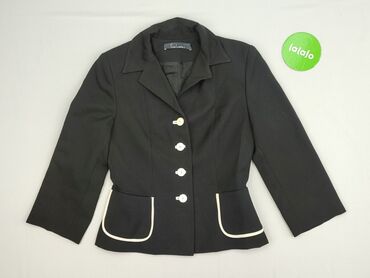 Damska marynarka w kolorze czarnym (rozmiar z metki: 36). - Krój: taliowany, jednorzędowy, z dwoma guzikami - Kołnierz: klasyczne, szerokie klapy - Rękawy: długie - Kieszenie: dwie przednie z patk...