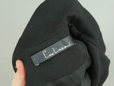 Żakiet damski Leo Lazzi - Kolor: czarny - Krój: taliowany, z modelującymi przeszyciami - Zapięcie: asymetryczne na haftkę (ukryte) - Kołnierz: stójka - Rękawy: długie - Tył: rozcięcie u dołu dla w...Stan:
