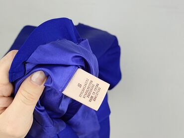 - Materiał: tkanina garniturowa o gładkim splocie, trzymająca formę (syntetyk – metka z rozmiarem S widoczna na zdjęciu)
