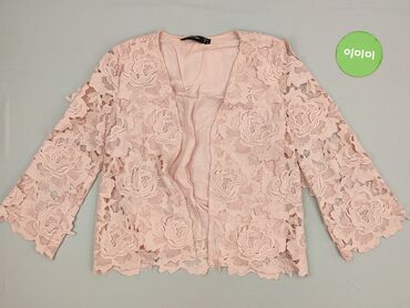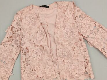 Żakiet damski koronkowy - Kolor: intensywna czerwień - Fason: krótki, lekko taliowany, bez zapięcia (otwarty przód) - Materiał: koronkowa tkanina z kwiatowym wzorem; wewnątrz gładka, satynowa pods...