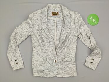 Szary damski żakiet ORIGINAL Made in Cambodia, rozmiar M. - Krój: klasyczna marynarka jednorzędowa, zapinana na jeden guzik - Kolor: jasnoszary melanż - Materiał: miękka dzianina (komfortowa, elas...