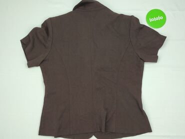 Damska marynarka BASTET, rozmiar 36. - Kolor: ciemny brąz/czekoladowy z delikatnym połyskiem (satynowy efekt) - Krój: taliowany, podkreślający sylwetkę; lekko krótsza długość - Zapięcie: jeden ozd...
