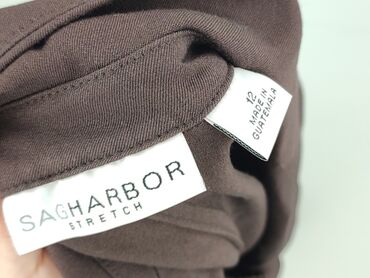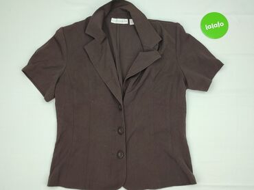 Damski żakiet marki Sag Harbor Stretch w ciemnobrązowym kolorze. Charakteryzuje się krótkimi rękawami i klasycznym kołnierzem marynarkowym. Zapinany na guziki z przodu. Wykonany z elastycznej tkaniny, co zapewnia komfort noszenia. Model odpowiedni do tworzenia zarówno codziennych, jak i bardziej formalnych zestawień. Rozmiar 12.