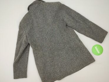 Damski płaszcz/żakiet w odcieniach szarości z drobnym, tkanym mikrowzorem (kratka/efekt „pepita”). Model z kołnierzem i dwurzędowym zapięciem na trzy guziki z przodu. Prosty, lekko pudełkowy krój ...Stan: