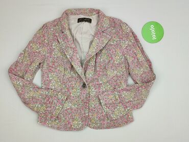 Kobieca marynarka KLAUDIA, rozmiar 38. - Krój: taliowana, zapinana na dwa guziki, z klapami. - Materiał: tkanina bawełniana w dotyku (brak metki składu widocznej na zdjęciach). - Wzór: intensywny,...