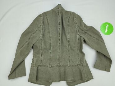 Marynarka/kurtka damska w kolorze ciemnego brązu, styl militarny. - Fason: dopasowany, zapinany na metalowy zamek z przodu - Dekor: podwójny rząd dużych, kulistych guzików w srebrnym kolorze, pago...