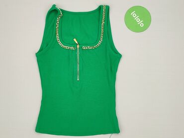 Top damski na ramiączkach spaghetti - Kolor: ciemna butelkowa zieleń - Krój: dopasowany, gładki, bez nadruków - Ramiączka: cienkie, regulowane - Materiał: miękka, elastyczna dzianina bawełniana z ...Stan: