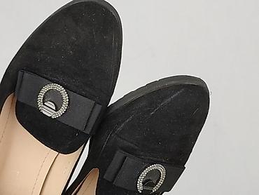 Czarne czółenka Clara Barson, rozmiar 37. - Klasyczny fason baleriny na niskim, stabilnym klockowym obcasie - Cholewka z materiału o wyglądzie zamszu, z lakierowanymi wstawkami przy pięcie i wykoń...