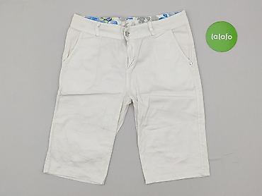 Białe damskie bermudy/rybaczki - Krój: dopasowany, długość za kolano - Stan: średni (średniej wysokości) z elastycznym pasem bez widocznego zapięcia - Materiał: bawełna z domieszką elastanu – lekk...