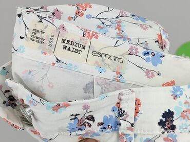 Szorty damskie Esmara - Rozmiar z metki: EU 38 (FR 40, IT/ES/PT 42, GB/NI 10) - Materiał: 100% wiskoza (LENZING ECOVERO) - Kolor/wzór: białe w niebieskie, akwarelowe motywy roślinne i kwiatowe - P...