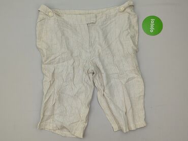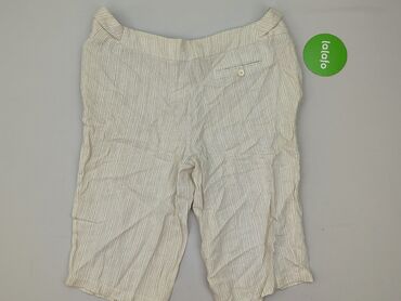 Beżowe bermudy damskie/uni, rozmiar M - Krój: proste nogawki do kolan - Stan podwyższony z szerokim, marszczonym pasem; szlufki na pasek - Zapięcie: brak widocznego – elastyczny pas zapewnia wygodn...