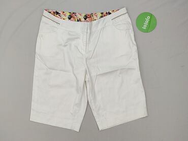 Bermudy damskie F&F w kolorze białym. - Krój: klasyczne bermudy o długości do kolan - Zapięcie: z przodu, dodatkowo szeroki pasek z klamrą w kolorze złota - Kieszenie: dwie wpuszczane z przodu, dw...