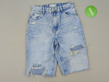 Szorty jeansowe damskie Bershka Denim - Model: krótkie szorty z podwiniętymi nogawkami - Kolor: jasny niebieski (washed denim) - Fason: klasyczny 5‑kieszeniowy, przetarcia/efekt distressed z przod...