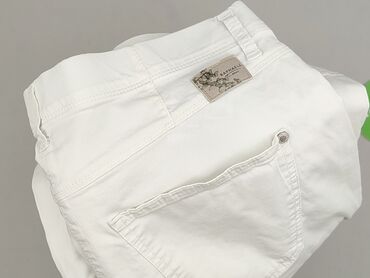 Białe damskie bermudy/rybaczki - Krój: dopasowany, długość za kolano - Stan: średni (średniej wysokości) z elastycznym pasem bez widocznego zapięcia - Materiał: bawełna z domieszką elastanu – lekk...
