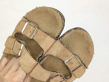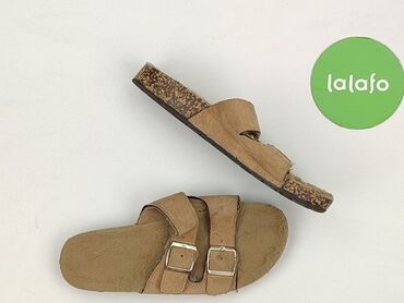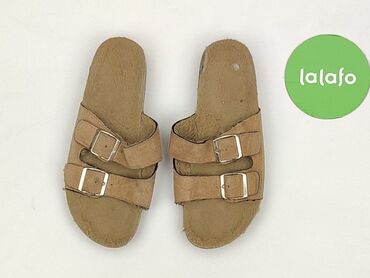 Damskie klapki wsuwane - Rozmiar: 36 (oznaczenie na podeszwie) - Typ: płaskie, wsuwane - Cholewka: szerokie krzyżujące się paski z tworzywa imitującego zamsz w kolorze karmelowym - Wkładka: gładka...
