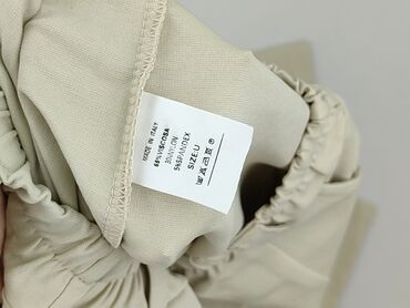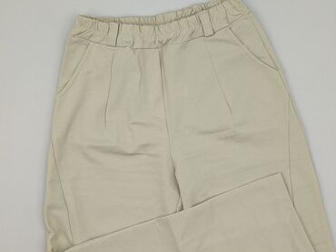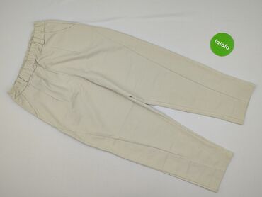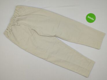 Beżowe spodnie damskie z elastyczną talią w rozmiarze S. Wykonane z mieszanki 63% wiskozy, 32% poliestru i 5% elastanu, co zapewnia wygodę i elastyczność. Spodnie posiadają szlufki na pasek oraz pr...