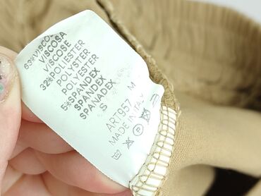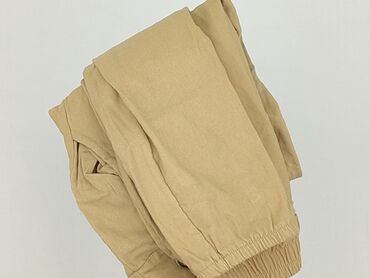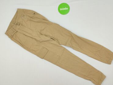 Beżowe spodnie typu cargo/jogger - Krój: nogawki zwężane, cargo z bocznymi kieszeniami z patkami na udach - Pas: elastyczna guma z przodu zapinana na dwa zatrzaski - Kieszenie: 2 kieszenie ukośne ...