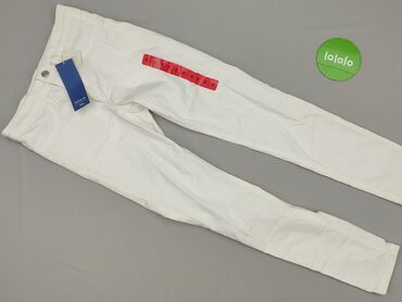 Białe jeansy damskie Sinsay - Fason: skinny, nogawki dopasowane - Stan pasa: mid waist (średni stan) - Rozmiar z metki: 34 - Klasyczny krój 5‑kieszeniowy: dwie kieszenie z tyłu, trzy z przodu (w t...