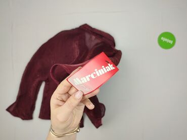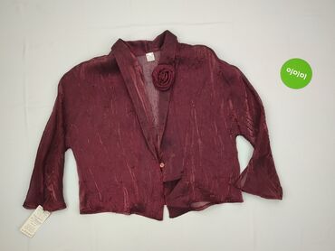 Bolerko damskie w kolorze burgundowym z marszczonego materiału, które świetnie sprawdzi się jako eleganckie uzupełnienie wieczorowej stylizacji. Posiada długie, szerokie rękawy oraz charakterystyczną przypinkę w kształcie róży, dodającą subtelnego uroku. Lekkie i zwiewne, idealne na specjalne okazje, kiedy potrzebne jest okrycie ramion lub delikatne ocieplenie.