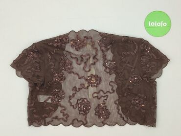 Brązowy ażurowy bolerko/kamizelka damska X-RAY - Krój: krótkie bolerko bez rękawów, zapinane z przodu ozdobną klamrą - Materiał: 50% bawełna, 50% akryl (metka wewnętrzna) - Splot: gruby, dekoracyj...Stan: