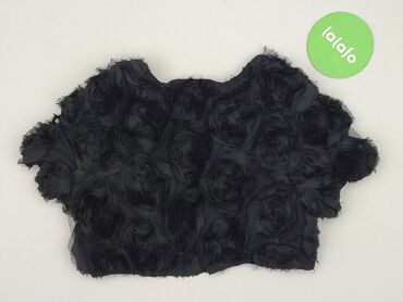 Bolero damskie, krótkie, czarne - Krój: bolerko z otwartym przodem, lekko zaokrąglone poły, krótki rękaw - Rozmiar: M (metka widoczna na zdjęciu) - Materiał: gładka, lekko połyskująca tkanina o sa...