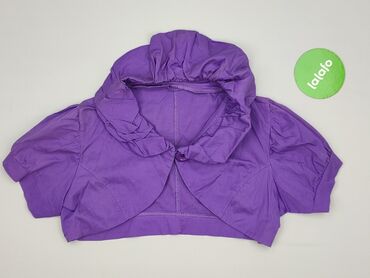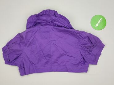 Bolero/kamizelka damska z połyskującej tkaniny, kolor głęboki fiolet. Krótki, otwarty fason bez zapięcia, zaokrąglone poły, rękaw krótki. Gładkie wykończenia przy krawędziach, lekko elastyczny mate...
