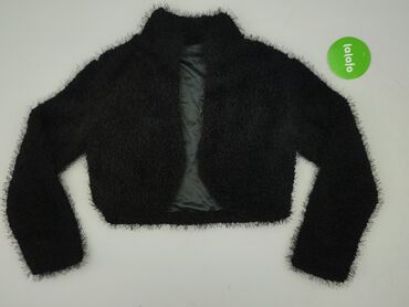 Czarny bolerko/sweterek z długim rękawem - Krój: krótkie bolerko zakrywające ramiona i górną część pleców - Rękawy: bardzo długie, dopasowane - Materiał: cienka, elastyczna dzianina (miękka w doty...