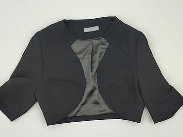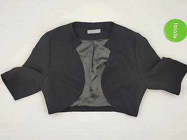 - Fason: eleganckie bolerko o zaokrąglonych połach, bez zapięcia