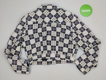 Marynarka damska w paski H&M - Model: krótka marynarka bez zapięcia, z kontrastową granatową lamówką przy krawędziach - Wzór: poziome granatowo-białe paski, styl marynistyczny - Fason: lekko talio...