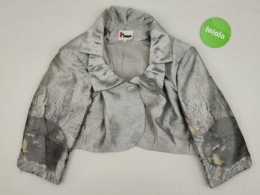 Krótki żakiet DAGNEZ, rozmiar 36 - Kolor: srebrzysta szarość - Fason: krótki bolerko/żakiet z 3/4 rękawem - Zapięcie: efektowna, okrągła klamra z przodu (asymetryczne ułożenie połów) - Kołnierz: s...