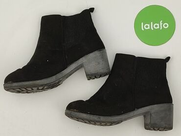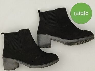 Botki damskie na obcasie, czarne - Rozmiar: 36 (oznaczenie na podeszwie) - Cholewka: materiał syntetyczny z matowym wykończeniem - Wkładka: skóra naturalna - Wyściółka: materiał tekstylny - Podesz...