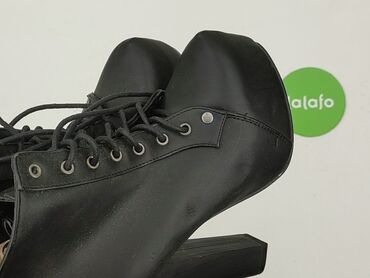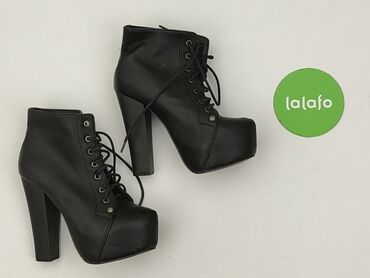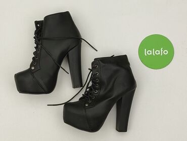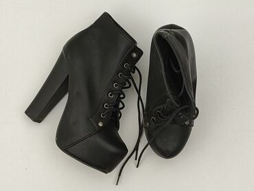 Czarne botki na obcasie - Model: krótkie botki za kostkę - Kolor: czarny - Materiał cholewki: skóra ekologiczna (oznaczenie na podeszwie) - Wyściółka/wnętrze: tworzywo - Podeszwa: tworzywo - Rozmi...Stan:
