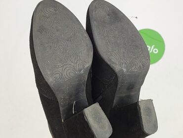 Botki damskie na obcasie, czarne - Rozmiar: 36 (oznaczenie na podeszwie) - Cholewka: materiał syntetyczny z matowym wykończeniem - Wkładka: skóra naturalna - Wyściółka: materiał tekstylny - Podesz...