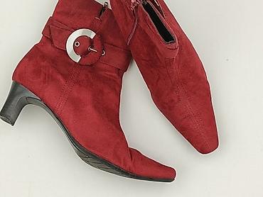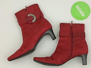 Damskie botki na obcasie – czerwone - Rozmiar: 40 (oznaczenie na podeszwie) - Kolor: intensywna czerwień - Cholewka: materiał zamszowy (miękki w dotyku) - Model: wsuwany, z elastycznymi wstawkami ...