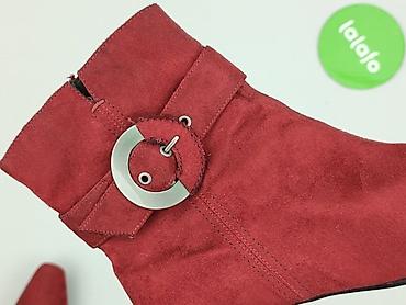 Damskie botki na obcasie – czerwone - Rozmiar: 40 (oznaczenie na podeszwie) - Kolor: intensywna czerwień - Cholewka: materiał zamszowy (miękki w dotyku) - Model: wsuwany, z elastycznymi wstawkami ...Stan: