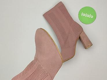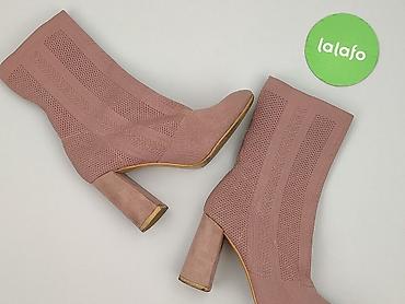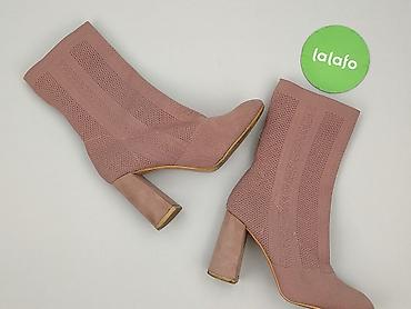 Damskie botki na obcasie - Rozmiar: 36 (widoczny na podeszwie) - Typ: botki za kostkę - Materiał wierzchni: zamsz (eko lub naturalny – miękka, welurowa faktura) - Kolor: karmelowy/beżowy - Zapięci...