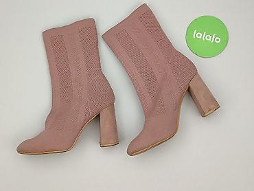 Damskie botki w stylu kowbojskim/boho w kolorze pudrowego różu. - Cholewka z miękkiego materiału z lekkim marszczeniem - Ozdobne paski wokół kostki: plecionka, pasek z klamrą, aplikacje z perełkam...