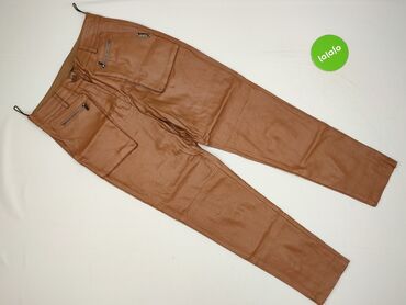 Brązowe spodnie damskie marki Reserved, wykonane z imitacji skóry. Posiadają wysoki stan i zwężane nogawki, co nadaje im elegancki, a jednocześnie nowoczesny wygląd. Idealnie sprawdzą się w codzien...