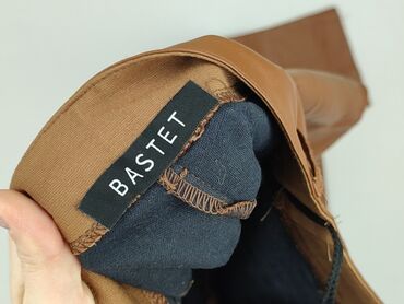 Brązowe spodnie damskie z ekoskóry marki Bastet, idealne do stworzenia stylowych, codziennych lub eleganckich stylizacji. Charakteryzują się dopasowanym fasonem, który podkreśla sylwetkę, oraz praktycznymi kieszeniami na zamek, zapewniającymi bezpieczeństwo przechowywanych drobiazgów. Spodnie są wykonane z poliuretanu, co zapewnia trwałość i łatwość w pielęgnacji, a podszewka z wiskozy i poliestru gwarantuje komfort noszenia. Dyskretne zapięcie na zamek i guzik oraz szlufki na pasek dopełniają design. Idealne na każdą okazję, od casualowych wyjść po bardziej formalne spotkania.